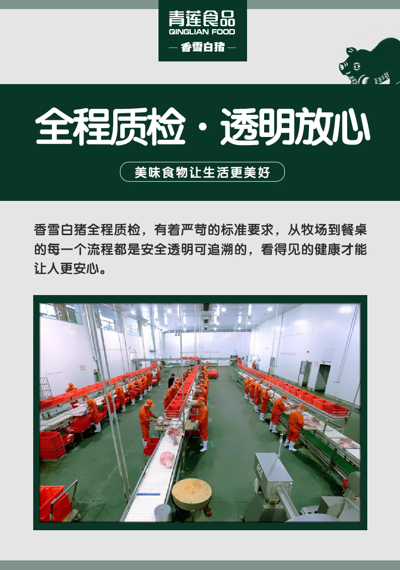 香雪白豬抗病力強,在飼養過程中全程無需使用任何抗生素、化學藥物、生長激素等。全程無抗飼養而成的香雪白豬,生鮮肉品品質更安心。
